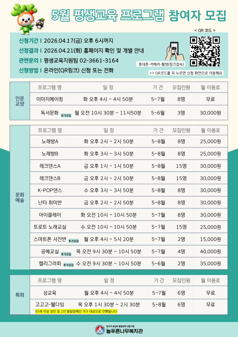 2026년 5월 개강 평생교육 프로그램 신청링크 : https://forms.gle/hnbgfhjZ1GbTkcoo7