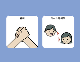AAC 보완대체 의사소통이란? Augmentative and Alternative Communication 의 약자입니다. 다른사람과 대화에 어려움이 있는 사람들의 말을 보완하거나 대체하는 다양한 방법을 말합니다. AAC는 장애인, 외국인, 글자를 읽기 어려운 의사소통 약자 등이 사용할 수 있습니다. AAC는 왜 필요할까요? 의사소통은 권리입니다. 본인의 생각과 의견을 스스로 표현하고 들을 수 있어야 합니다. AAC는 어떻게 사용할까요? 1 AAC존 스티커가 있는지 찾기 1 AAC 도움 그림·글자판 찾기 1 AAC 도움 그림·글자판에서 원하는 그림(상징)찾아 가리키며 의사표현 하기 1 AAC를 활용하여 상대방과 의사소통 하기 소통소통 마을 소통소통 마을은 AAC ZONE이 모여있는 지역(마을)을 말합니다. 늘푸른나무복지관은 강서구 AAC마을지원기관으로 활동합니다.